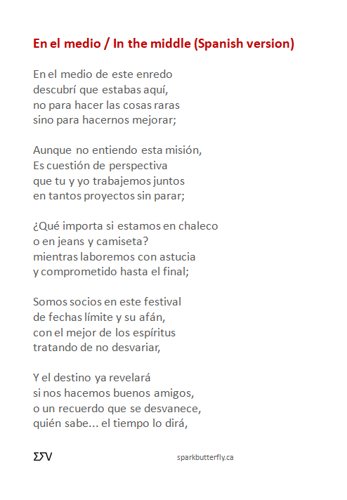 En el medio / In the middle (Spanish version) 0 January 28, 2024January 28, 2024 Written by sparkbutterfly Toronto, January 28, 2024 Share this: Share on Facebook (Opens in new window) Facebook Share on WhatsApp (Opens in new window) WhatsApp Share on LinkedIn (Opens in new window) LinkedIn Share on X (Opens in new window) X Like Loading... Related