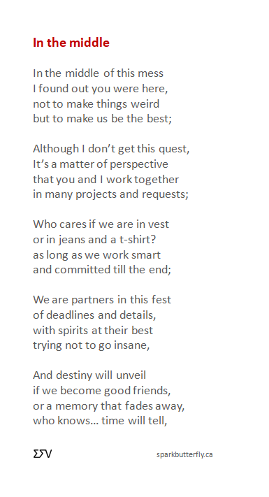 In the middle 0 January 28, 2024 Written by sparkbutterfly Toronto, January 25, 2024 Share this: Share on Facebook (Opens in new window) Facebook Share on WhatsApp (Opens in new window) WhatsApp Share on LinkedIn (Opens in new window) LinkedIn Share on X (Opens in new window) X Like Loading... Related