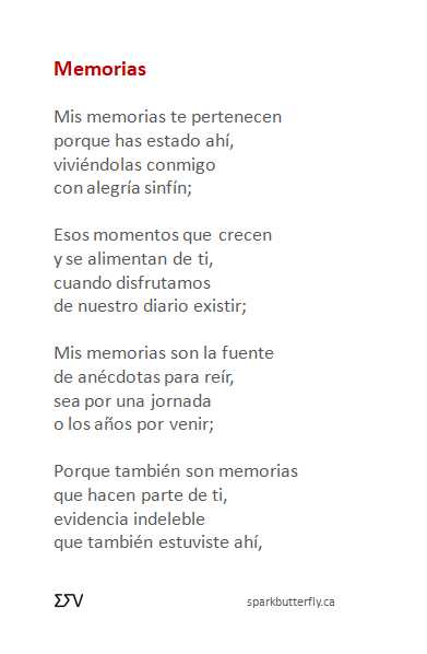 Memorias 0 January 28, 2024 Written by sparkbutterfly Toronto, December 30, 2023 Share this: Share on Facebook (Opens in new window) Facebook Share on WhatsApp (Opens in new window) WhatsApp Share on LinkedIn (Opens in new window) LinkedIn Share on X (Opens in new window) X Like Loading... Related
