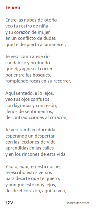 Te veo 0 November 24, 2024 Written by sparkbutterfly Toronto, November 15, 2023 Share this: Share on Facebook (Opens in new window) Facebook Share on WhatsApp (Opens in new window) WhatsApp Share on LinkedIn (Opens in new window) LinkedIn Share on X (Opens in new window) X Like Loading... Related